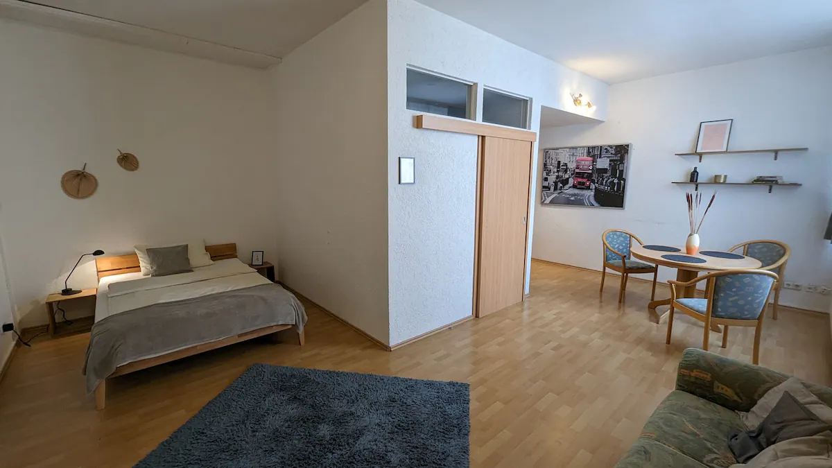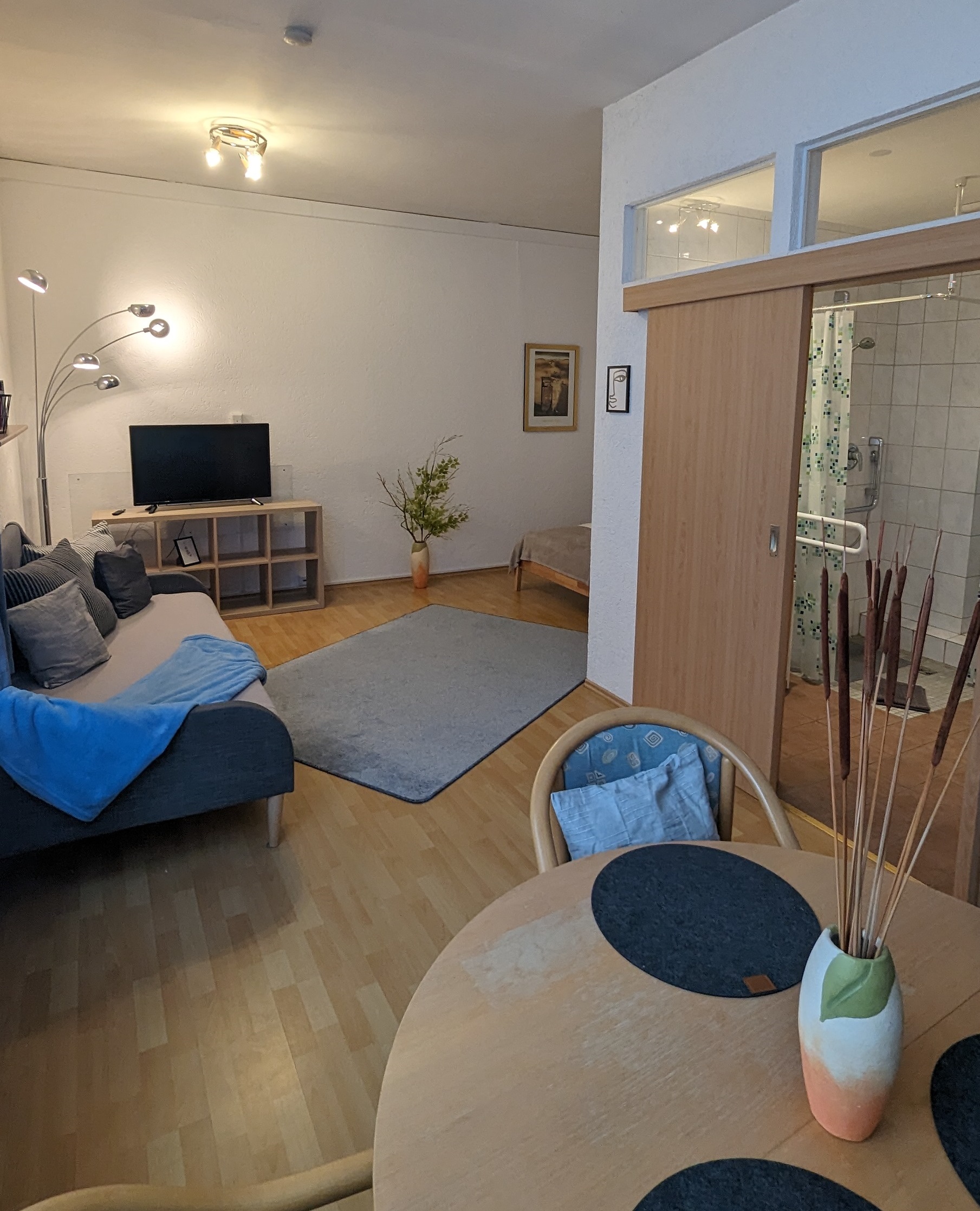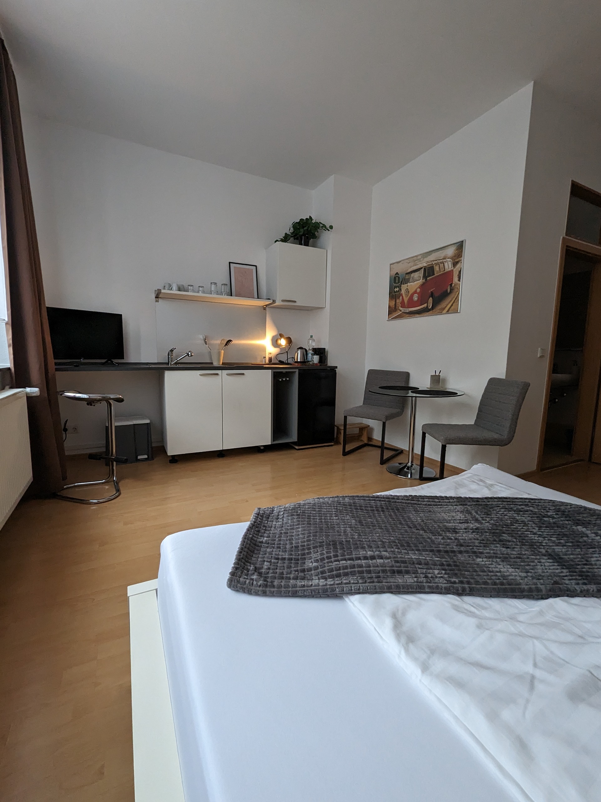 Unser 27qm Studio in Pforzheim bietet dir eine zentrale Lage und dennoch ruhige Umgebung mit Blick auf den Innenhof. Ein bequemes 160er Doppelbett, eine kleine, zweckmäßige Kitchenette mit Doppelkochfeld und Kühlschrank. Internet TV für deine Streaming Dienste, ein Duschbad, und schnelles Wifi um stets online zu sein. Ob Alleine oder zu zweit, ob geschäftlich oder privat, unser Studio ist der perfekte Ort, um in Pforzheim zu übernachten. Buche jetzt und erlebe Komfort und Gastlichkeit! Belegung für max. 2 Erwachsene.
