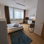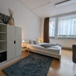Entdecke unser stylisches 45qm Apartment in zentraler Lage! Großzügige Diele mit Sitzecke, gemütliches helles Wohn-Schlafzimmer mit 160er Bett, Schlafsessel für ein mitreisendes Kind, Schreibtisch und Blick über die B10 auf den Oststadtpark. Duschbad mit viel Platz und die geräumige Küche bietet auch für längere Aufenthalte alles was man braucht. Bei 2 getrennt schlafenden Erwachsenen kann ein Zimmer über den Gang optional dazu gebucht werden (Verfügbarkeit erfragen). Buche jetzt und fühle dich wie zuhause!
